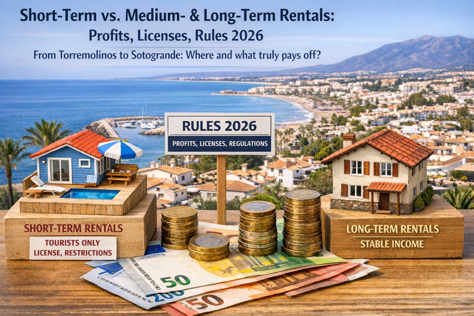 Short-term vs. medium-term and long-term rental comparison: Yields, licenses, rules 2026, from Torremolinos to Sotogrande. Where and what is really worth it?